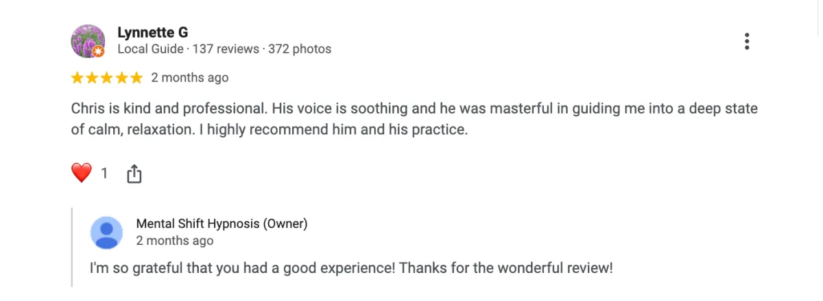 For more information, or to schedule an appointment with Mental Shift Hypnosis, click here.